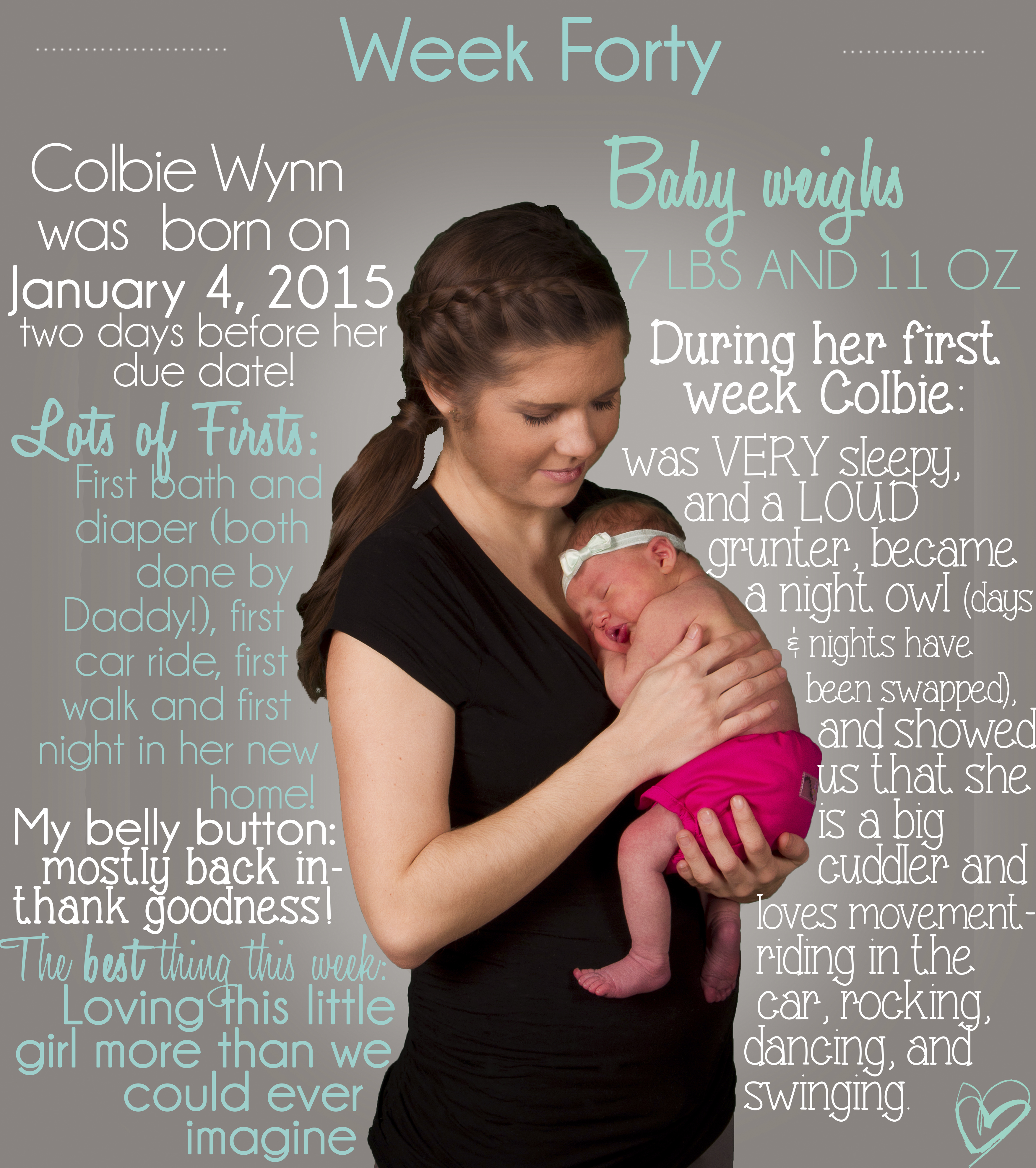 Giving birth to Colbie was the most intense, most difficult, most unique and most rewarding experience I’ve ever had. I feel so blessed to have been able to experience it and that both Colbie & I came out healthy and happy at the end. I can’t believe I am a mommy, my amazing husband is a daddy and we have this sweet new life to take care of. The enormity of it all still hits me every day. It is a love that cannot be described, but a love that is so strong its scary sometimes. I love this little person so much, I want to do everything for her and cannot imagine life without her. Thank you for blessing our lives Colbie Wynn. We can’t wait to watch you grow! Mommy & Daddy love you so much!