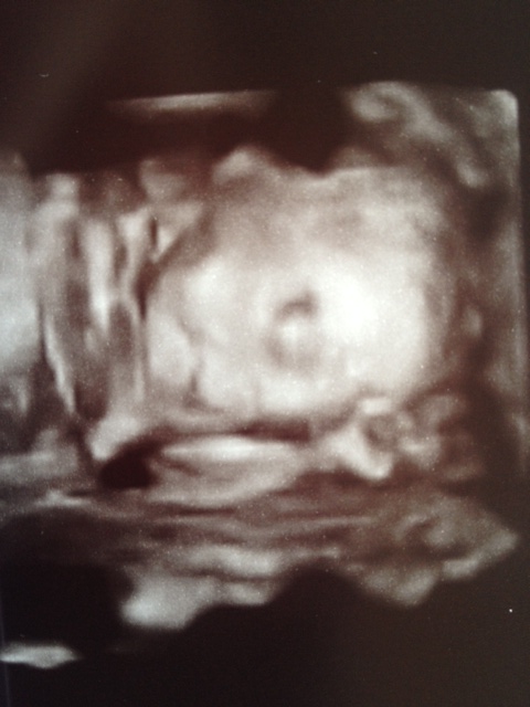 Although she has always been such a mover, her movements are definitely feeling different- they feel VERY LOW and bigger more purposeful movements, but less overall. I’m pretty sure she is running out of room in there! We got another sonogram a few weeks ago. I met with another doctor in my doctor’s practice and she was worried I was measuring too small so ordered a sonogram- although I figured it was unnecessary I will never say no to another chance to baby girl. Sonogram showed she was about 5.5 pounds, heartbeat was strong and exactly where it should be and she is in the 42% growth rate. Other than that we didn’t get much else. The sonographer (is that what they are called?) was so surprised by how stubborn baby girl was. She has BOTH hands covering her face and as we tried to have me lay on my side, push my belly and adjust her so we could get better views, she would NOT budge! We saw her move, but it was always on her own time and she would never react to us trying to get her to move. The sonographer asked who she got her stubbornness from. Trey is adamant that trait is from me! No way! 🙂 Out of pity we got a print out of baby girl’s foot because that is literally the only thing she would show us enough of to take a picture. So we’ll just have to wait until she actually arrives to see her. I am perfectly fine with that and just glad to see she is healthy and growing great. Side note: later meeting with MY doctor- she is very happy with my measurements and where everything is- she does believe that sonogram was unnecessary.